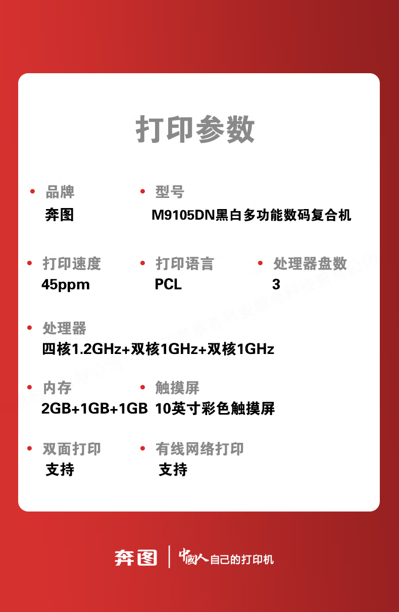 奔图 M9105DN A3 黑白多功能数码复合机/激光打印机/扫描仪/复印机 10英寸彩色触摸屏自动双面打印- 自营