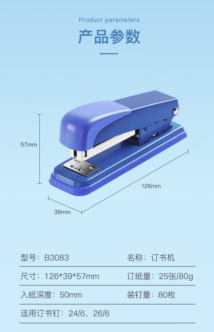 齐心(Comix)耐用型订书机/订书器 黑 12# B3083 自营