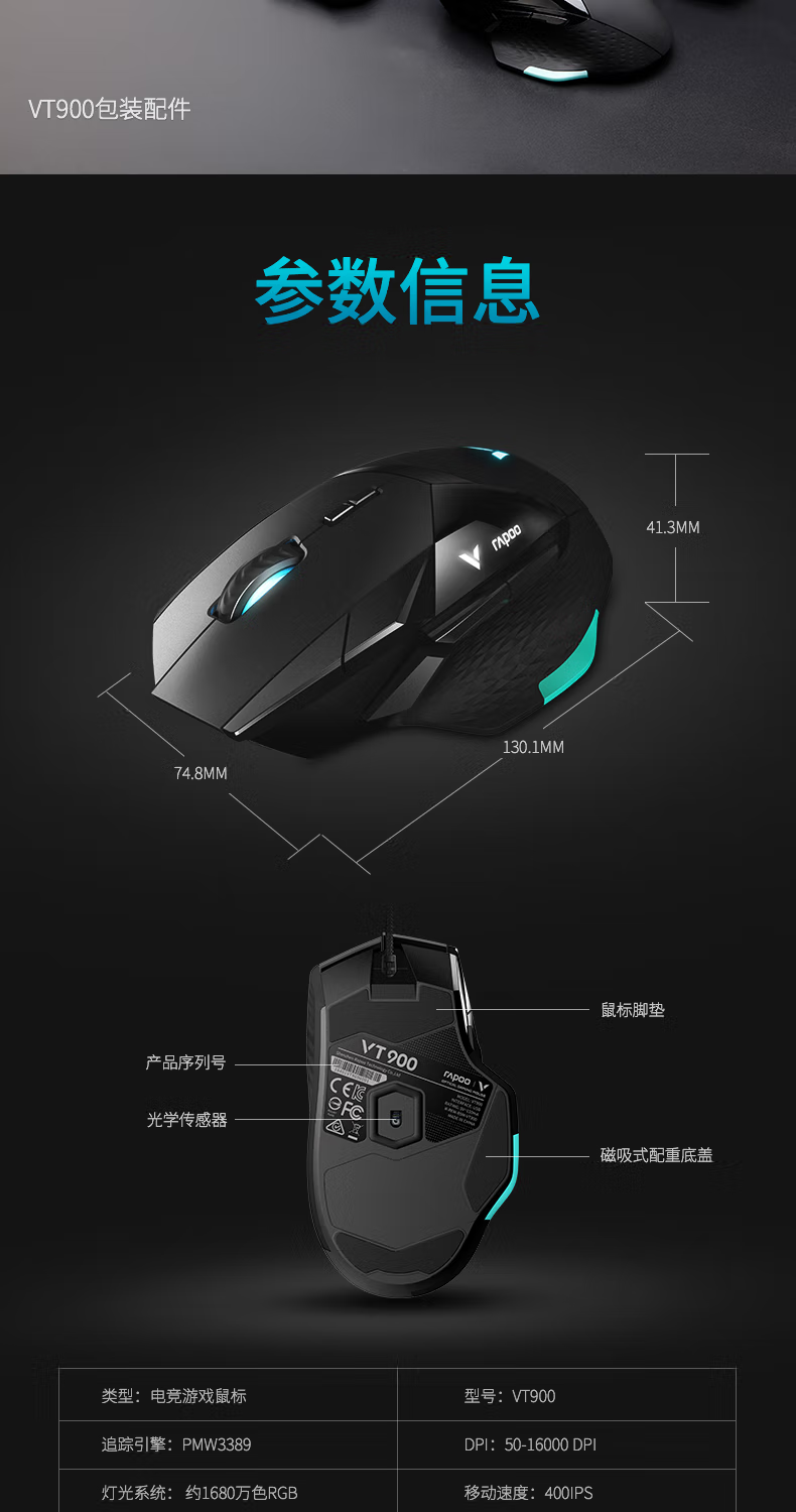 VT900鼠标 有线游戏鼠标电竞游戏吃鸡鼠标RGB背光鼠标宏编程带个性化OLED显示屏显示器盏炯 VT300【精准打击 吃鸡利器】 标配 自营