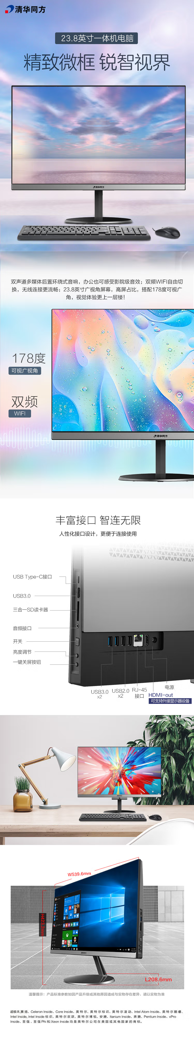 清华同方(THTF)超越A7000-30046商用家用一体机工业计算机i5-10400/8G/1T/256G/无光驱/集显/win10/23.8 自营