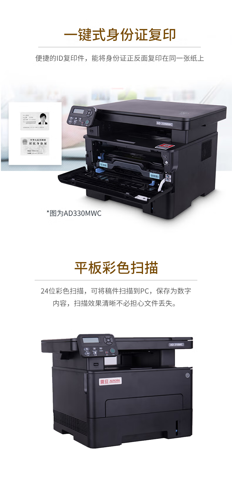 震旦AD316MWA黑白激光打印机多功能一体机无线双面打印 震旦AD330MWC 33页/分 双网络 自营