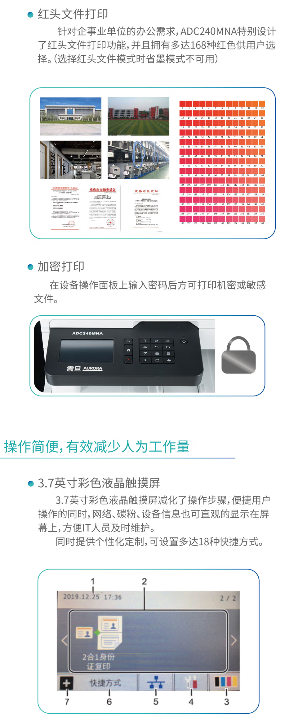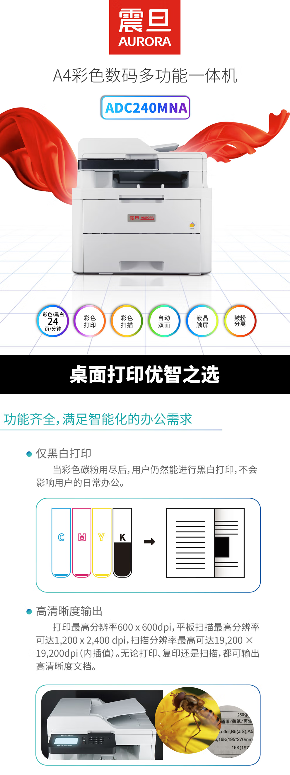 震旦(AURORA) 震旦ADC240MNA A4彩色激光打印复印扫描多功能一体机双面网络标配送稿器 震旦ADC240MNA (打印复印扫描双面打印) 自营