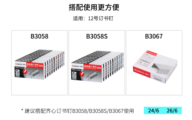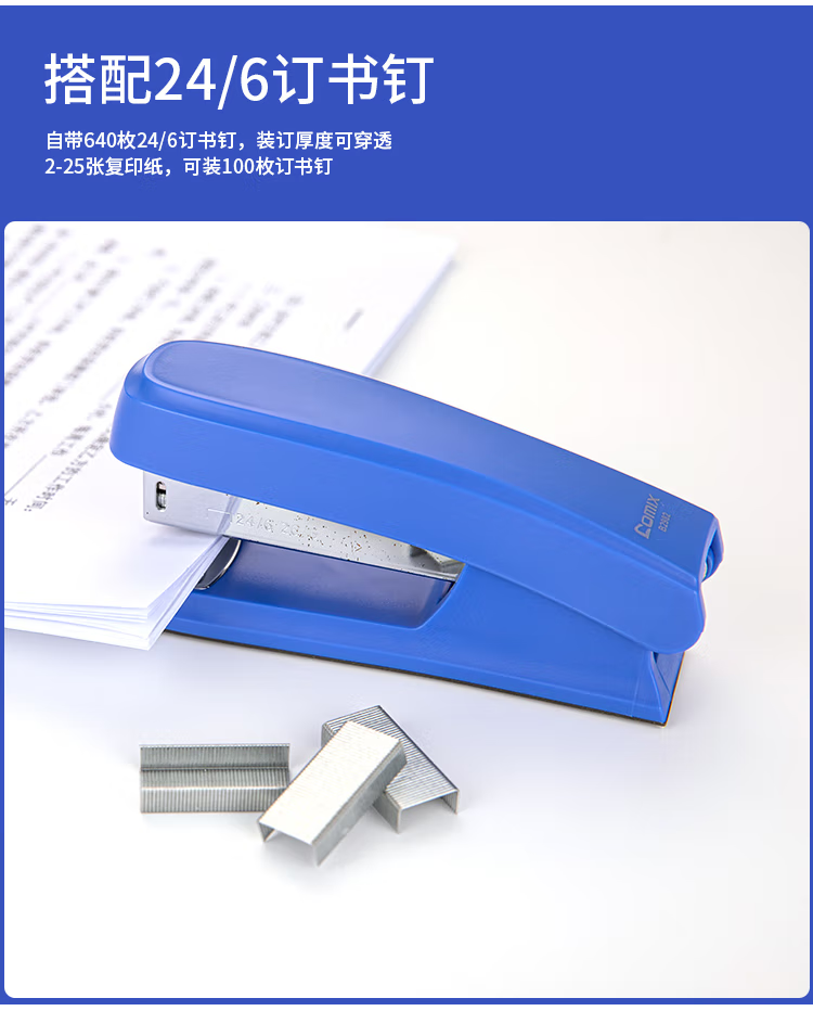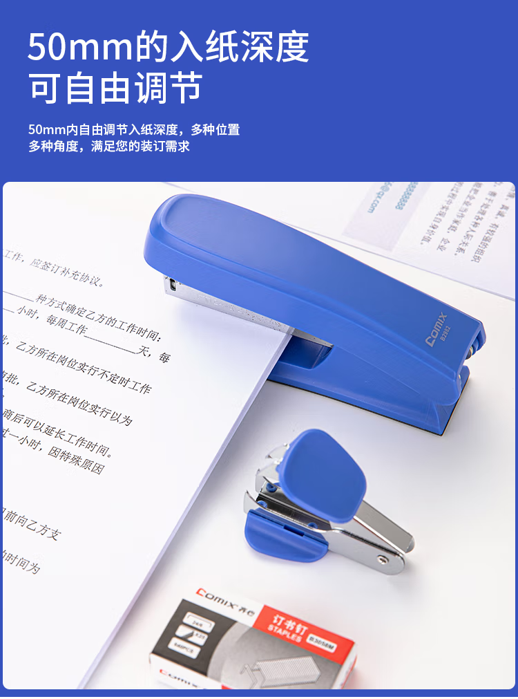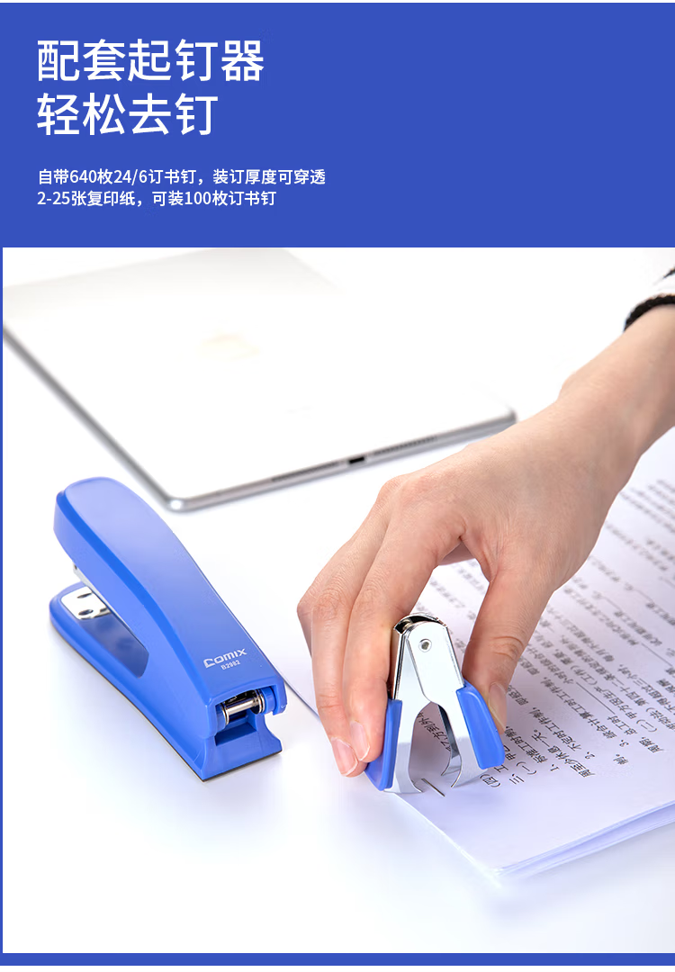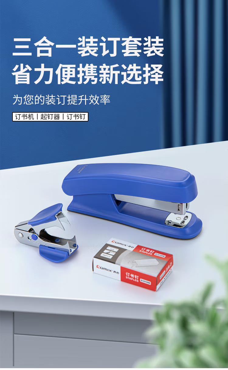 齐心(Comix)订书机套装(订书器+订书钉+起钉器) 12# 蓝 办公文具工具B3020 自营