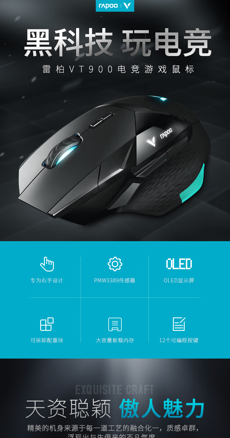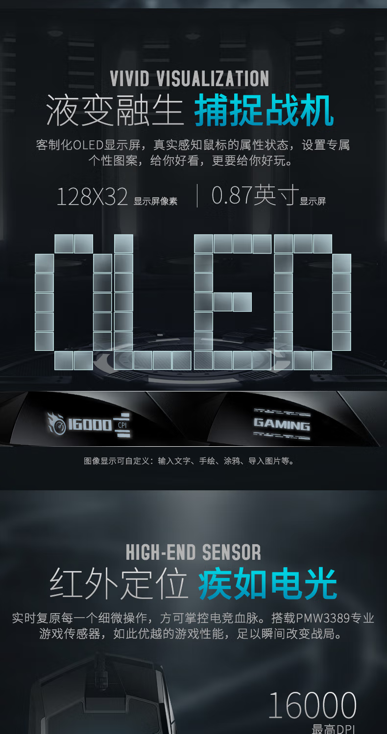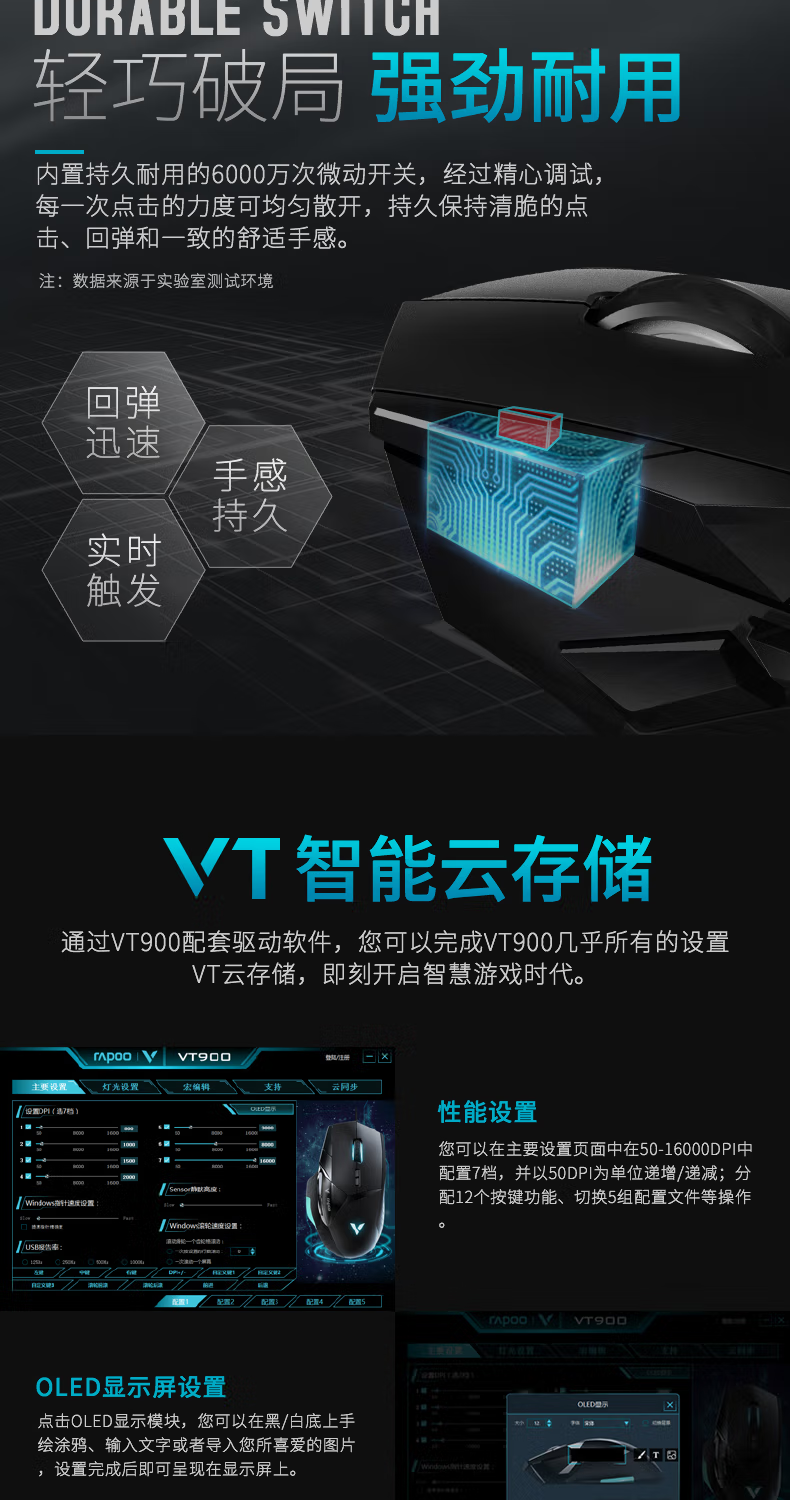 VT900鼠标 有线游戏鼠标电竞游戏吃鸡鼠标RGB背光鼠标宏编程带个性化OLED显示屏显示器盏炯 VT300【精准打击 吃鸡利器】 标配 自营