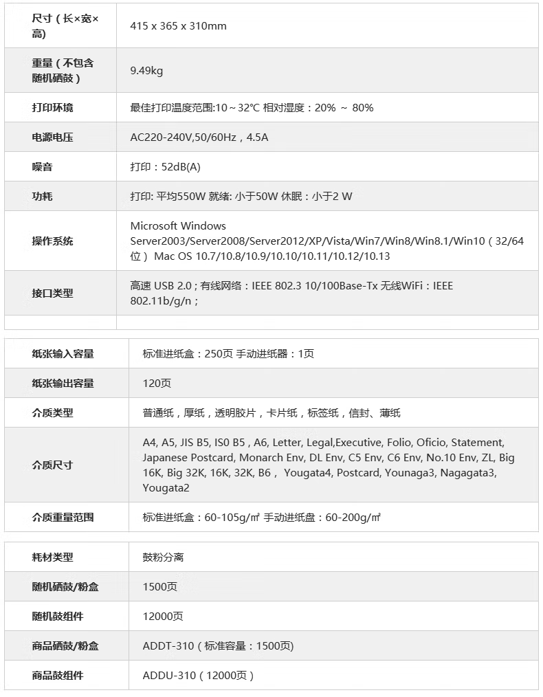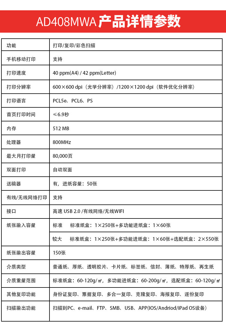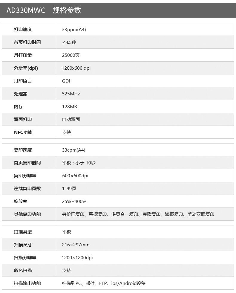 震旦AD316MWA黑白激光打印机多功能一体机无线双面打印 震旦AD330MWC 33页/分 双网络 自营