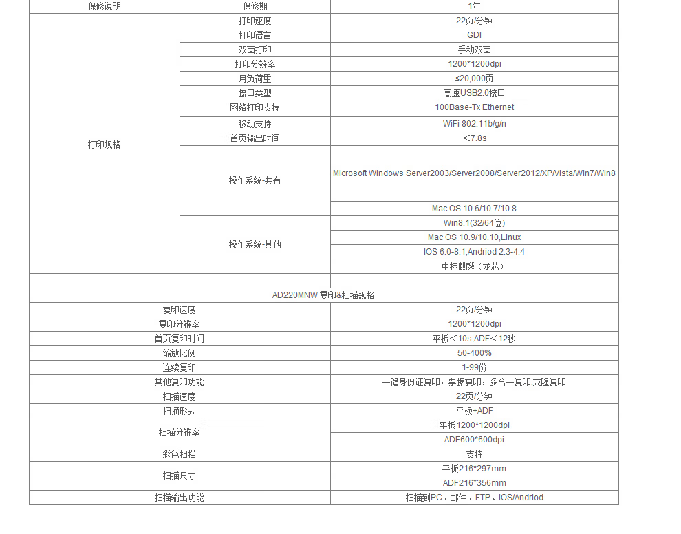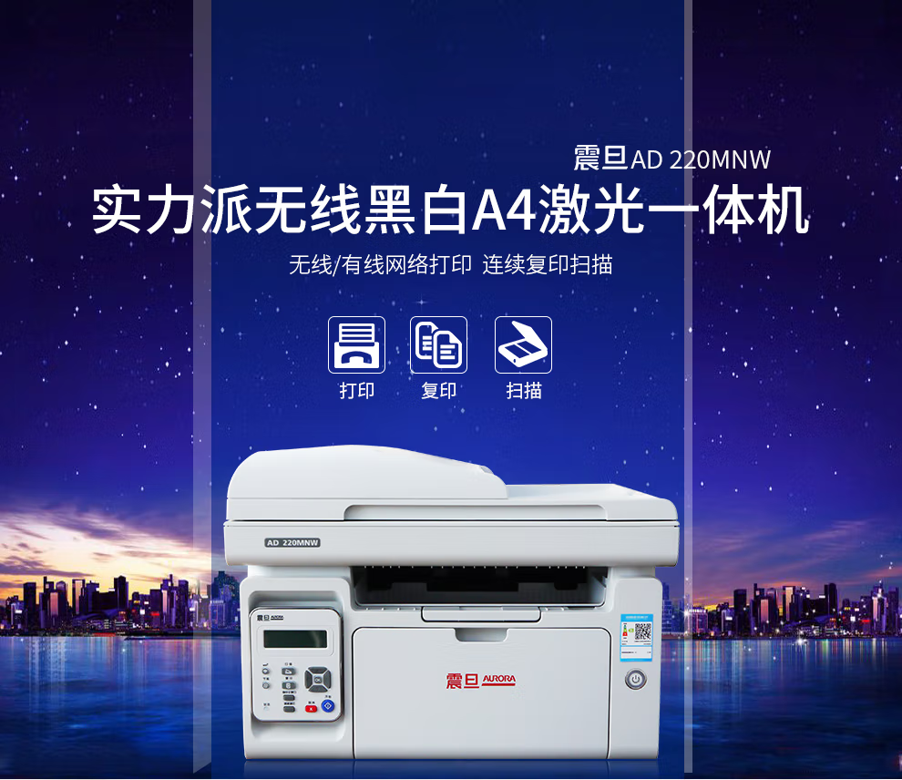 震旦 AD220MNW 黑白激光A4多功能一体机打印复印扫描家用办公学生作业支持手机无线wifi AD220MNW【+高品质碳粉*2瓶】 自营